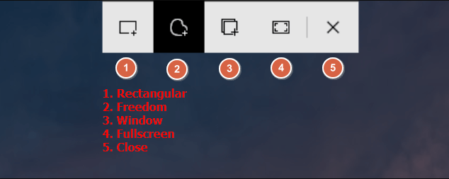 Step 2. Choose your snip mode: rectangular, freeform, window, or full screen.